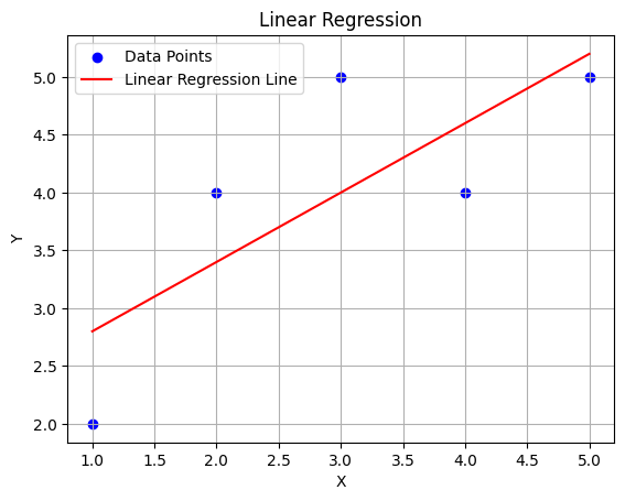 print("Intercept (b):", linear_regression_model.intercept_)Slope (m): 0.6