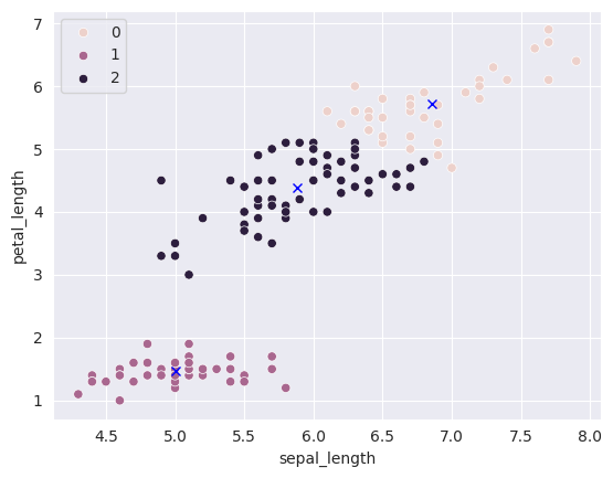 0, 2, 0, 0, 0, 0, 2, 0, 0, 0, 2, 0, 0, 0, 2, 0, 0, 2], dtype=int32)X['clusters'] = predsX| sepal_length | sepal_width | petal_length | petal_width | clusters | |