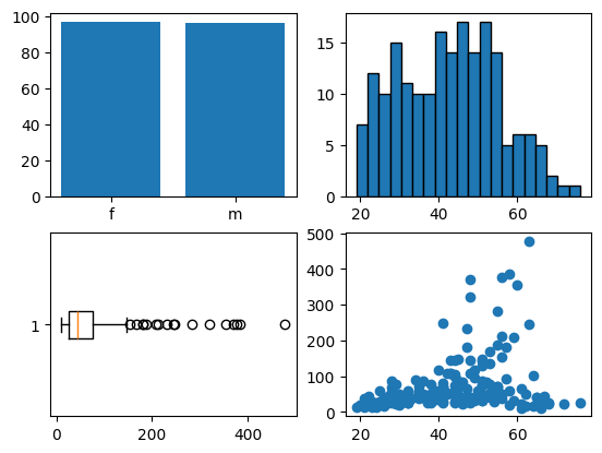 axes[0,0].bar(gender_counts.index, gender_counts.values)