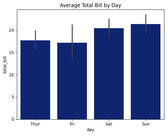 plt.title('Average Total Bill by Day')