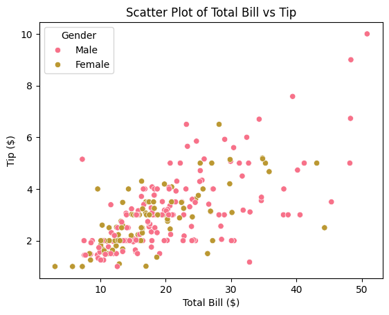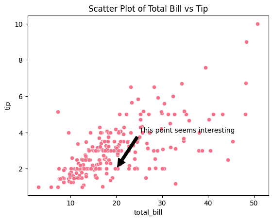 plt.title('Scatter Plot of Total Bill vs Tip')